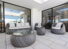 Vor Küche und Wohnzimmer liegt die Terrasse mit Esstisch und Loungemöbeln. Sie hat einen schönen Blick über den Pool in zum Buddha. Rund um den 9x3 m großen Pool gibt es mehere Liegen und einen sehr schön angelegten Garten. VFT/CA/12120