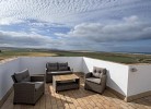 Apartment Cati in Conil is a modern in design and has magnificent sea views from the private roof terrace. It is located on the banks of the small river Rio Salado near the beach. It has a spacious open plan lounge with dining area and is equipped with internet access, SAT TV (English news channels) and air conditioning (cold/warm). There is a fully equipped modern kitchen (dishwasher, washing machine, oven, microwave). There are three bedrooms (two doubles 160x200 cm and 140x190 cm and one twin). The master bedroom has an en-suite bathroom and there is a separate shower room for the convenience of the other two bedrooms. From the balcony, which is accessed from the living room and equipped with a nice dining table, you reach the private, furnished roof terrace with breathtaking views of the long, sandy white beaches stretching out to El Palmar. On clear days even the coastline of Africa is visible. The apartment is on the second floor and there is an elevator.